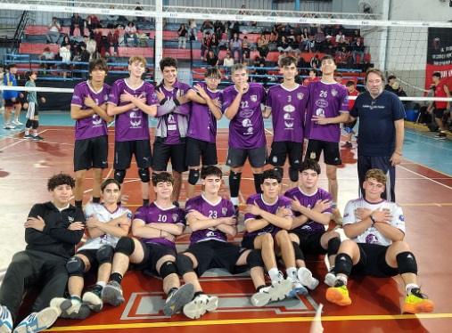 Presidente Derqui y Sinergia Pilar se enfrentaron en la calle Dorrego en el duelo de las canteras por el Nivel B de la Federación Metropolitana de Vóley en la rama masculina el fin de semana y la tira se pintó de Violeta.
